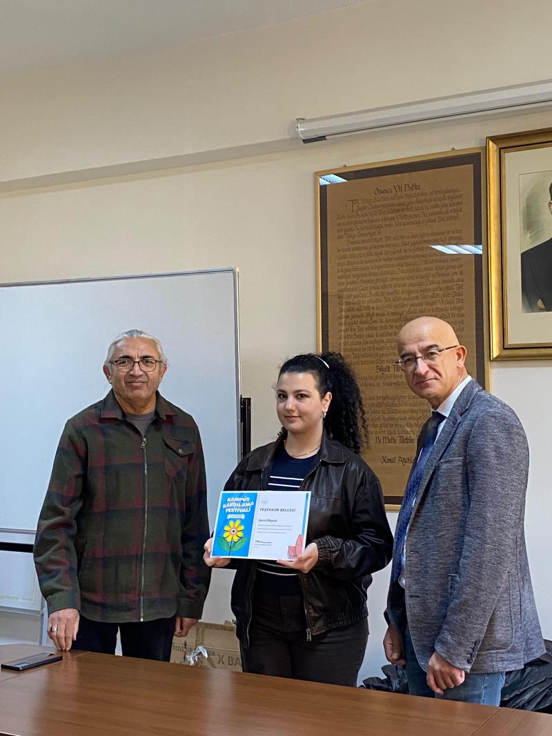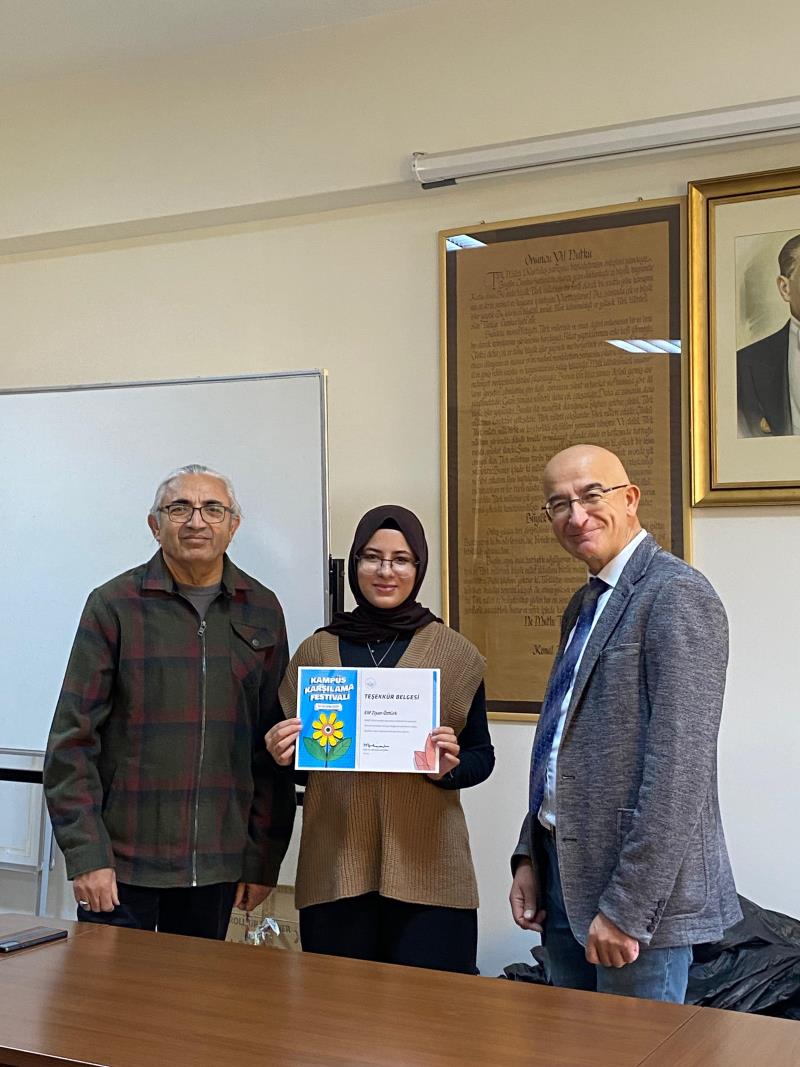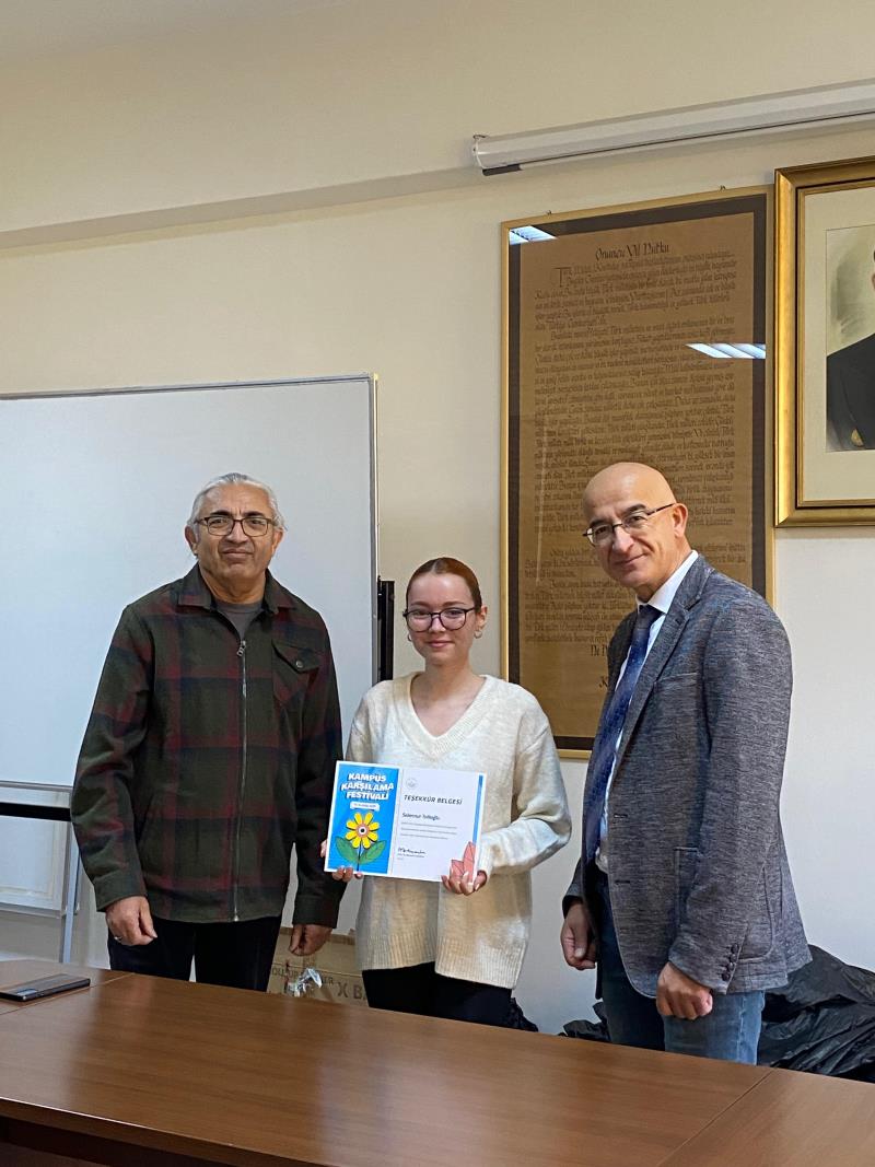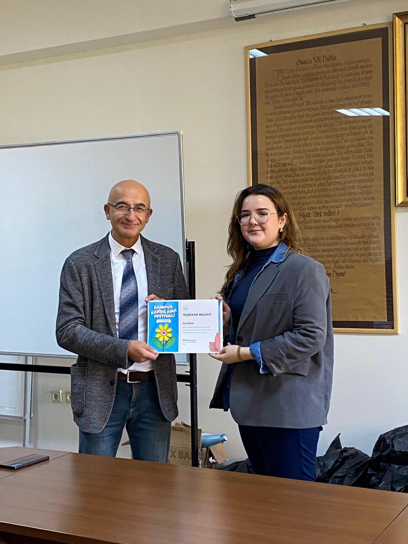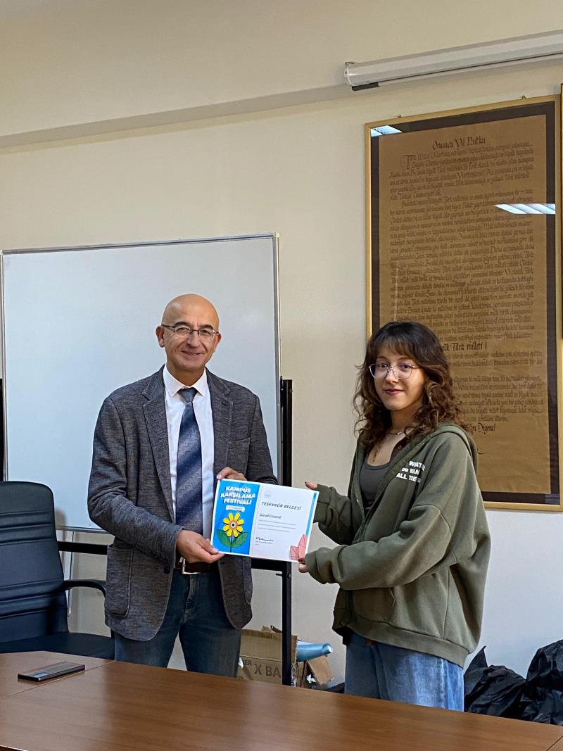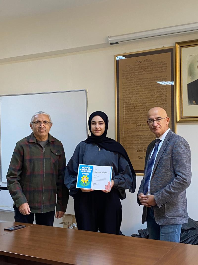 27 Ekim 2025 tarihinde, Eğitim Fakültesi Dekanı Prof. Dr. Üzeyir OK ve Güzel Sanatlar Eğitimi Bölüm Başkanı Prof. Dr. Sadık YÖNDEM tarafından, Eğitim Fakültesi Dekanlık Toplantı Salonunda Karşılama Festivaline katkı sağlayan Öğr. Gör. İlknur KARAGEYİK’e ve öğrencilerine teşekkür belgeleri takdim edildi