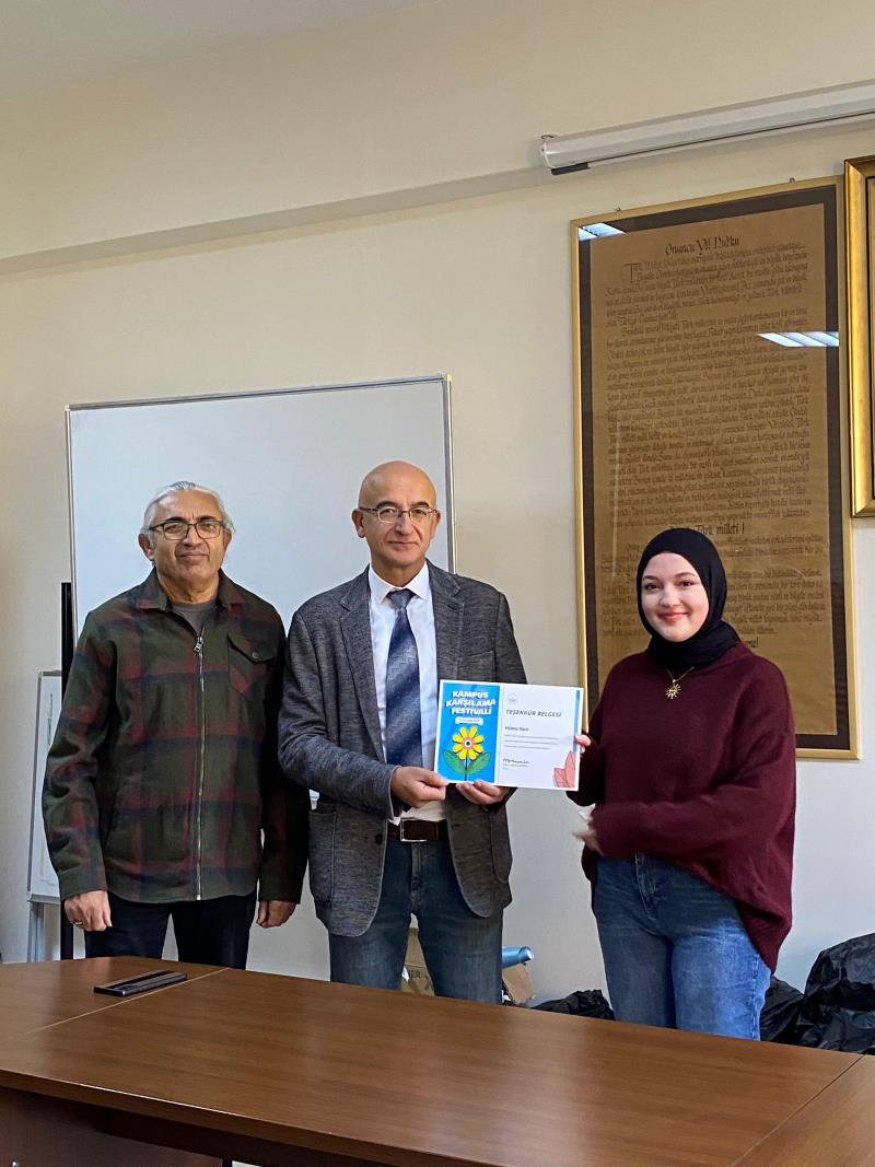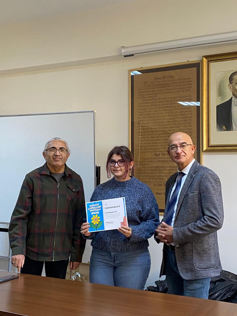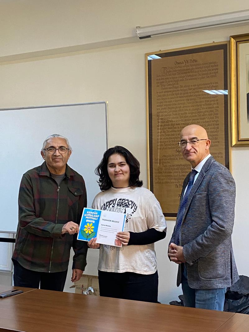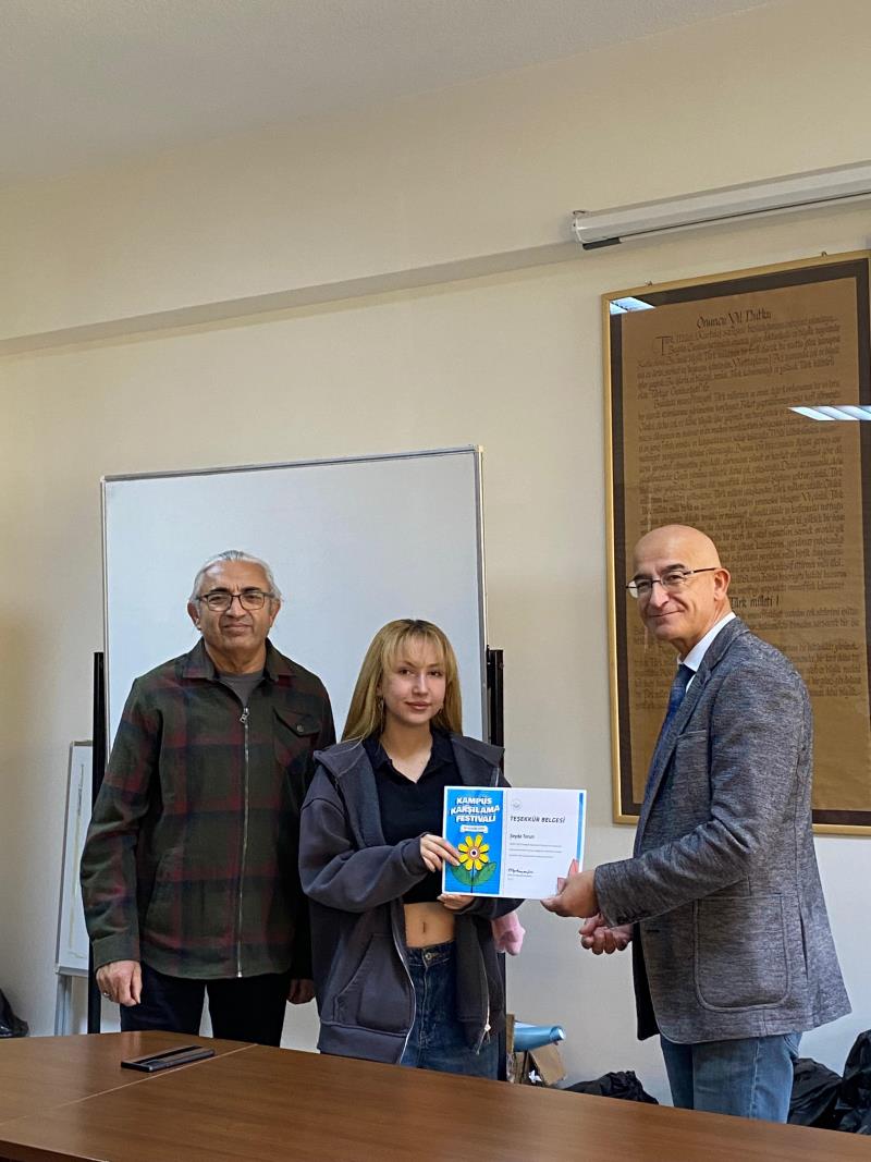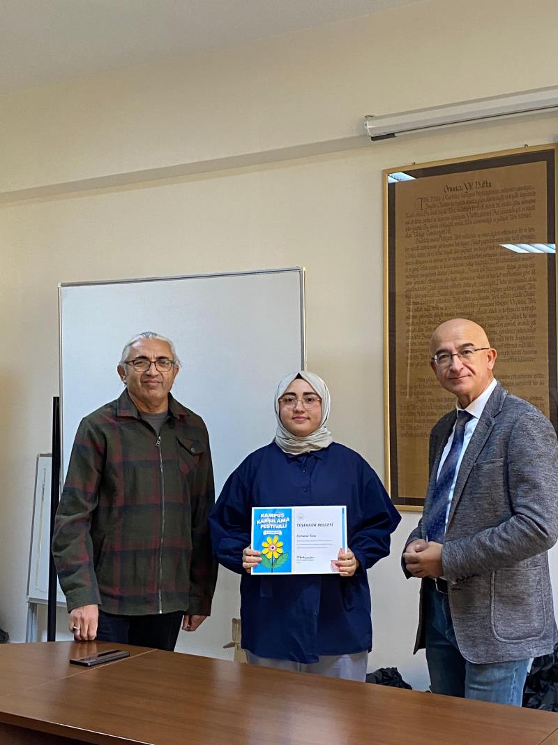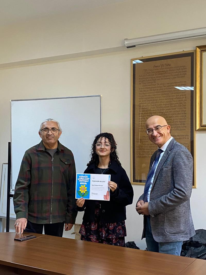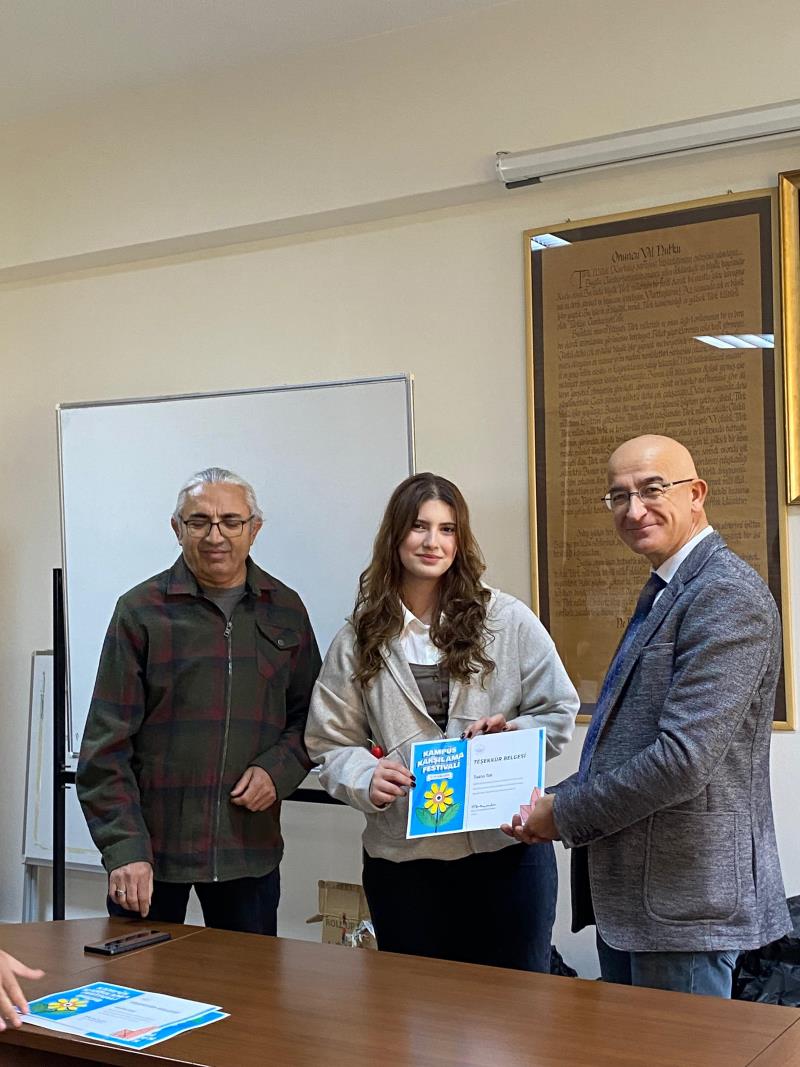 27 Ekim 2025 tarihinde, Eğitim Fakültesi Dekanı Prof. Dr. Üzeyir OK ve Güzel Sanatlar Eğitimi Bölüm Başkanı Prof. Dr. Sadık YÖNDEM tarafından, Eğitim Fakültesi Dekanlık Toplantı Salonunda Karşılama Festivaline katkı sağlayan Öğr. Gör. İlknur KARAGEYİK’e ve öğrencilerine teşekkür belgeleri takdim edildi