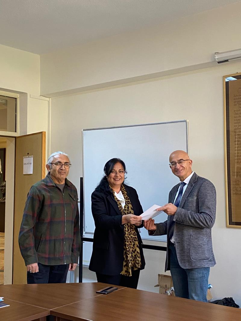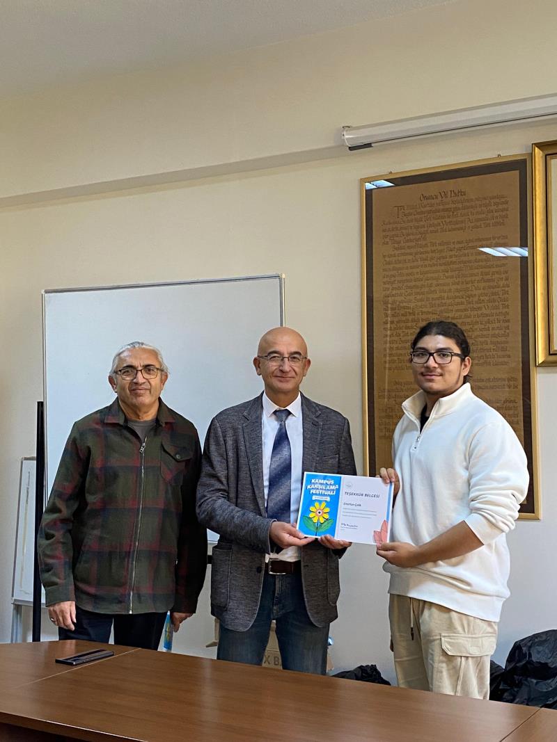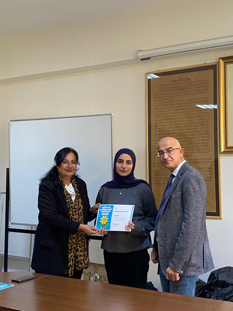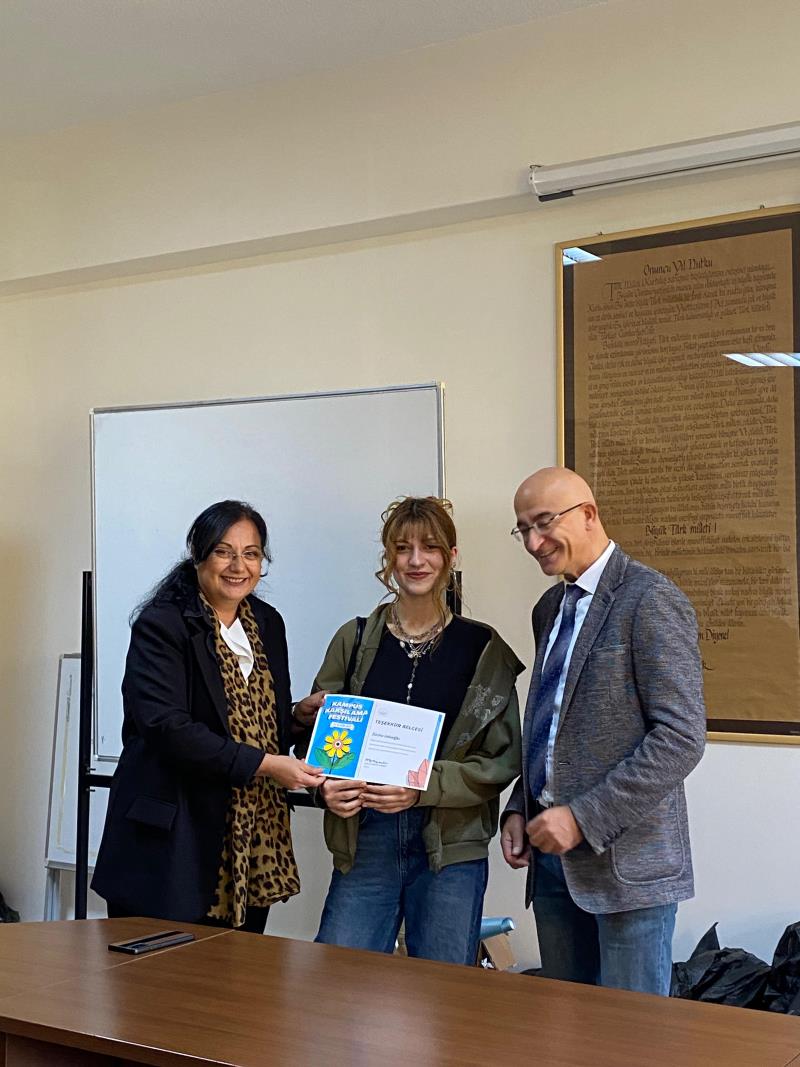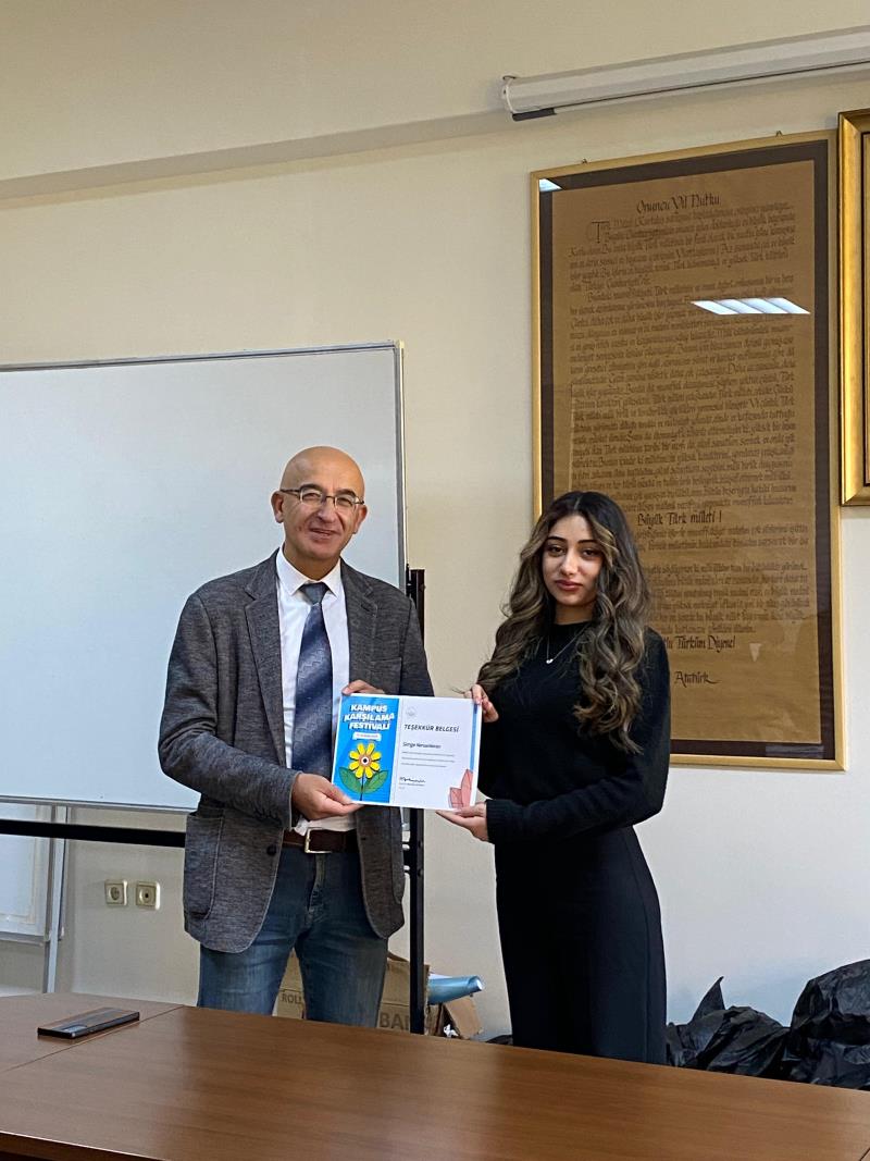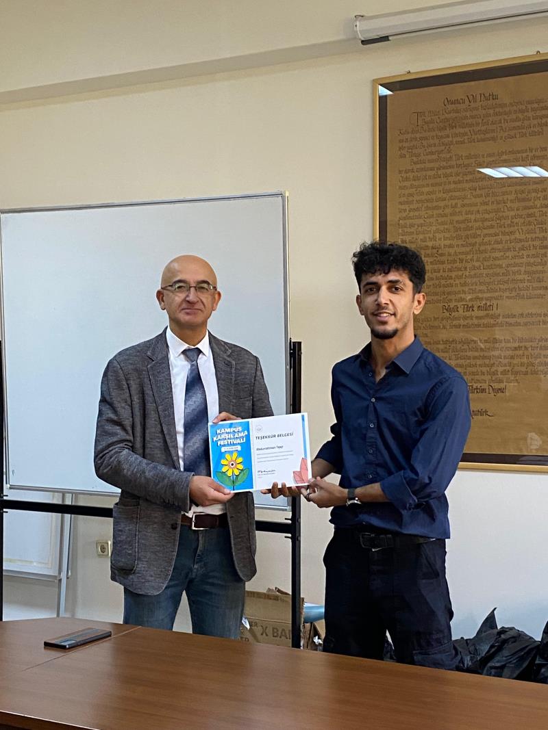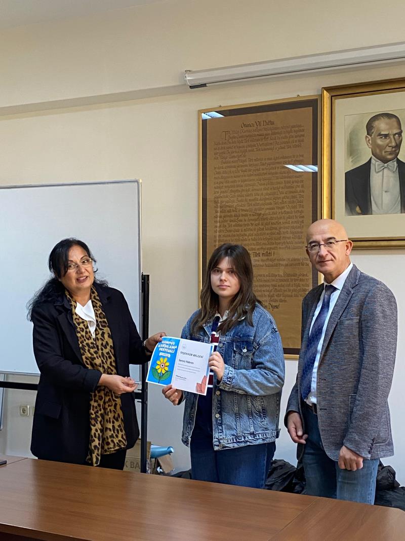 27 Ekim 2025 tarihinde, Eğitim Fakültesi Dekanı Prof. Dr. Üzeyir OK ve Güzel Sanatlar Eğitimi Bölüm Başkanı Prof. Dr. Sadık YÖNDEM tarafından, Eğitim Fakültesi Dekanlık Toplantı Salonunda Karşılama Festivaline katkı sağlayan Öğr. Gör. İlknur KARAGEYİK’e ve öğrencilerine teşekkür belgeleri takdim edildi